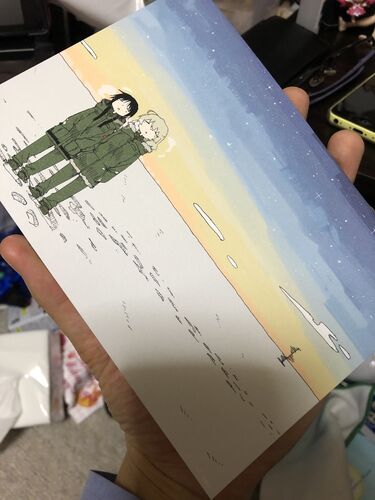 僕の好きな漫画、「少女終末旅行」 その作者のつくみず展が今開催されているようですね。 行きたかったけどとても行けない… だからせめて 買いました 原作最終巻の複製原画です ミニサイズなので質感はさほど感じませんが雰囲気はありますね 未開封の限定版…